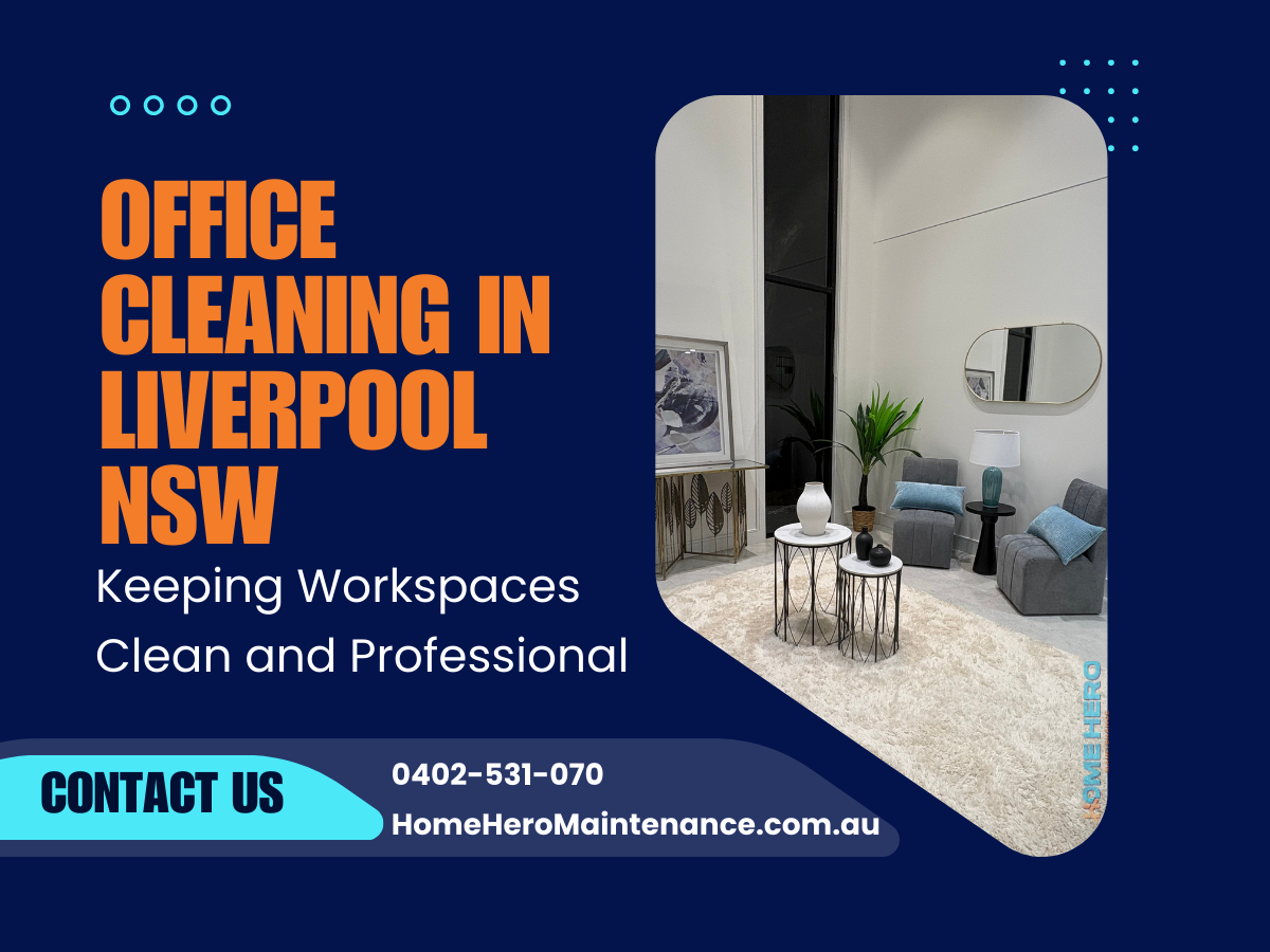 For businesses seeking a trusted partner, HomeHero Maintenance provides reliable, customised office cleaning solutions across Liverpool. Their experienced team ensures every corner of your office is spotless, helping your employees stay productive and your clients feel welcome. To schedule a cleaning or discuss a tailored plan, call HomeHero Maintenance on 0402 531 070 today.